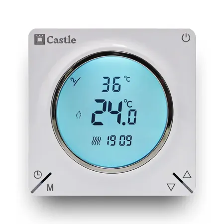 Терморегулятор Castle АС829H — сучасний програмований термостат для ефективного керування системою електричної теплої підлоги. Пристрій дозволяє точно контролювати температуру підлоги та підтримувати комфортний мікроклімат у приміщенні, одночасно зменшуючи споживання електроенергії.