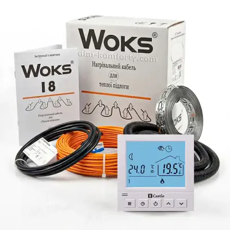 Комплект теплої підлоги Woks 18 Вт/м — Нагрівальний кабель з термостатом AC819