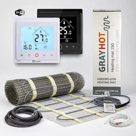 Комплект теплої підлоги GrayHot 150 Вт/м² — нагрівальний мат з Wi-Fi термостатом AC603